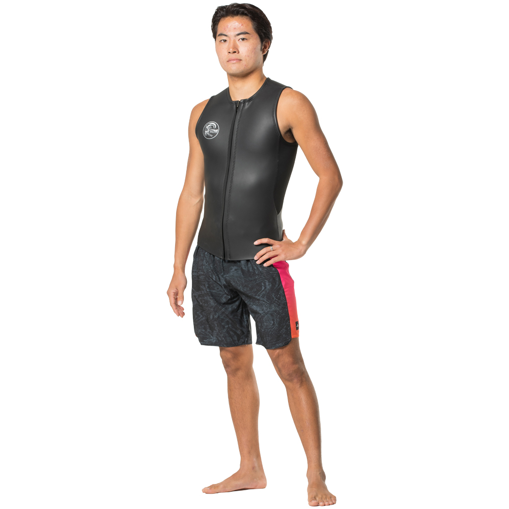 レトロスタイル・サーファーに向けた満足度の高いシリーズ。2mm厚のスムーススキンが風冷えから身体を守ります。
